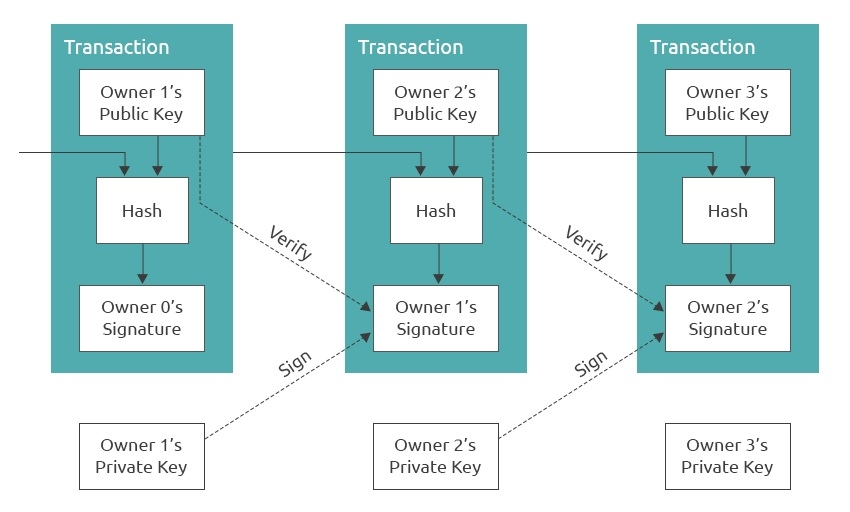 If Owner 1 wants to send coins to Owner 2, they obtain Owner 2’s public key (similar to a username) and use the private key (similar to a password) associated with Owner 1’s public key to authorize the transfer.